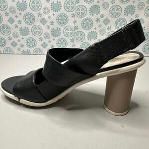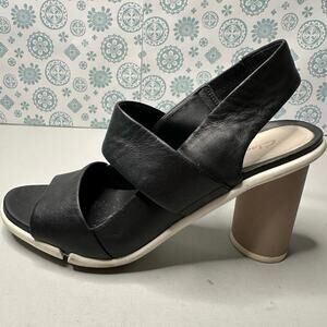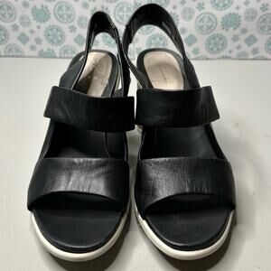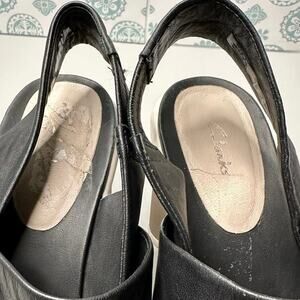 Clarks Womens 8.5M Imali Jasmine Leather Sandals Chunky Heels Black Open Toe