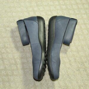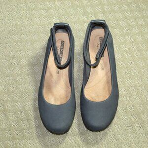 Clarks Women's 8M Navy Blue Round Toe Leather Flats with Ankle Strap