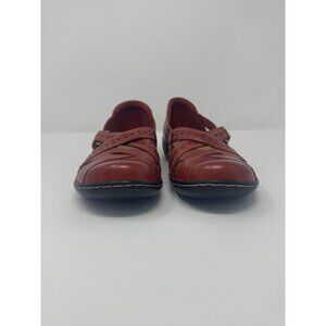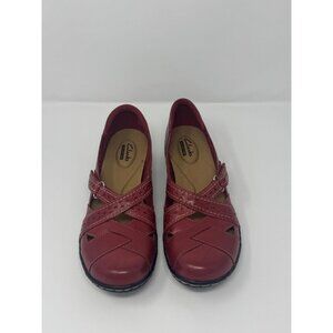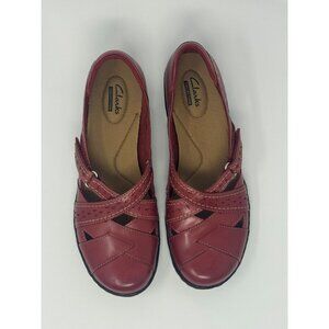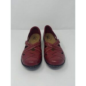 Clarks Womens 8N Ashland Spin Q Slip On Leather Shoes in Red