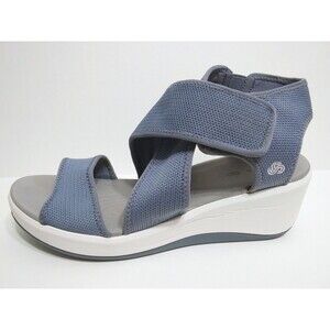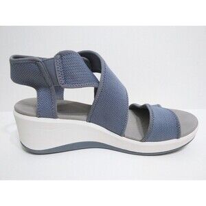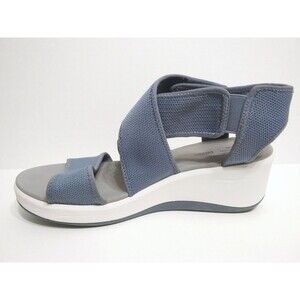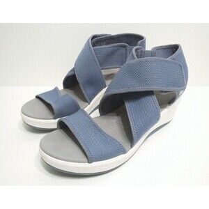 Clarks Women's 9 WIDE Wedge Sandals Step Cali Palm Knit Blue Wrap Cloudsteppers