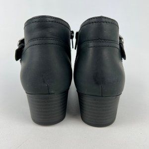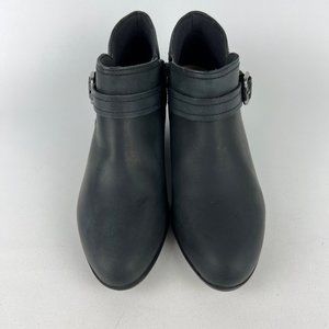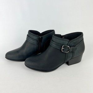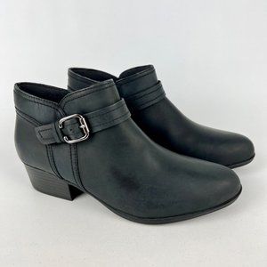 Clarks Womens Adreena Mid Black Leather Booties Zip Buckle Ankle Boots size 9.5