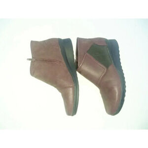 Clarks Womens Ankle Boots Burgundy Black Wedge Heel Round Toe Side Zip 7.5 M