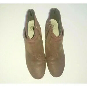 Clarks Womens Ankle Boots Burgundy Black Wedge Heel Round Toe Side Zip 7.5 M