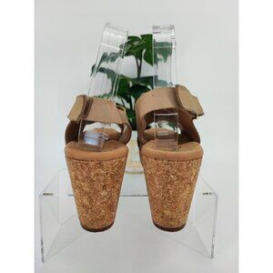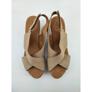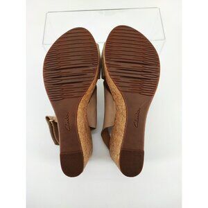 Clarks Women's Artisan Beige Slingback Cork Platform Wedge Sandals Size 8W US