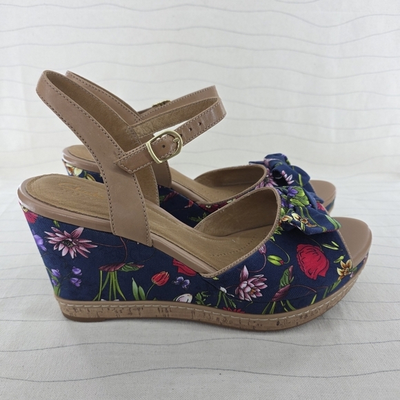 Clarks Womens Artisans Amelia Joyce Navy Floral Platform Wedge Heels Sz 11 NEW