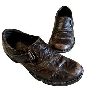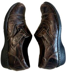 Clarks Womens Bedabbles Crinkle Leather Brown Loafer Hook & Loop Comfort 7.5M