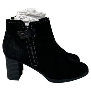 Clarks Women’s Black Bayla Glow Nubuck Leather Ankle Bootie Size 9.5 W