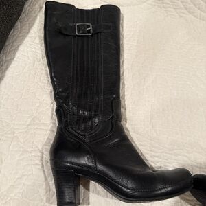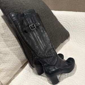 Black leather knee-high boots with a 3.5" heel Clarks size 8.5 #kneehighboots
