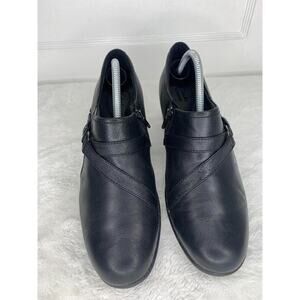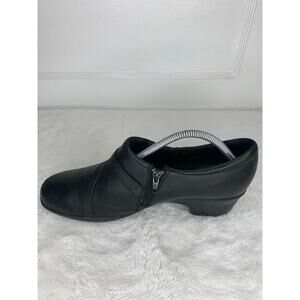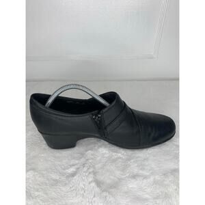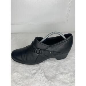 Clarks Womens Black Leather Slip-On Shoes With Buckle Detail Size 11M