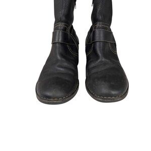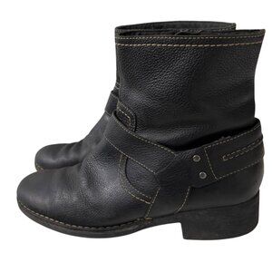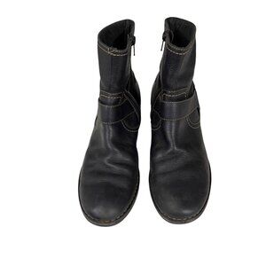 Clarks Women's Black Leather Western Festival Ankle Boots Size 8 Side Zipper