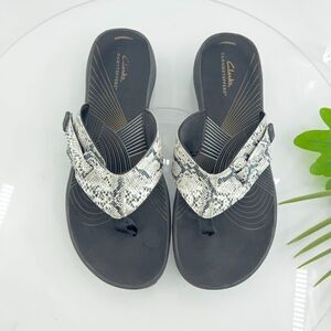 Clarks Women's Breeze Sea Sandal Size 10 Comfy Thong Slide Snake Casual Beach