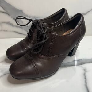Clarks Women's Brown Leather Academia Witchcore Oxford Lace Up Booties Sz 8