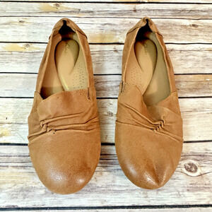 Clarks Collection Womens Brown Leather Jeanetter Slip On Comfort Loafers