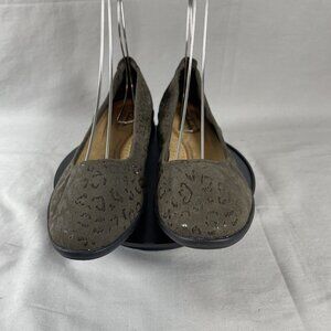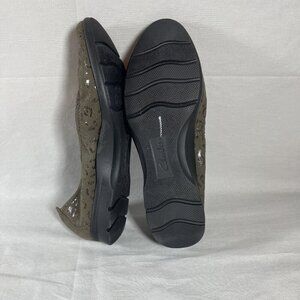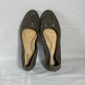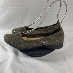 Clarks Women's Brown Leather Leopard Print Ultimate Comfort Round Toe Flats Shoe