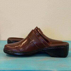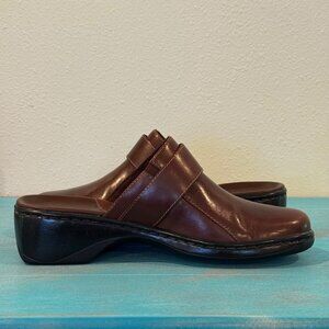 Clarks Womens Brown Leather Slip-On Mule Shoes With Buckle Detail Sz 7 #74106