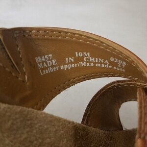 Clarks Brown Size 10 Shoes Brown Bold Strappy Design Wedge 2 1/2 Inches Leather Upper Slip On Size 10 Preowned Good Condition
