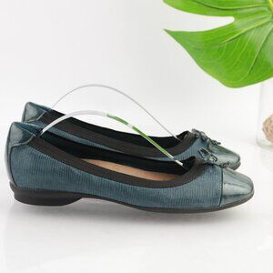 Clarks Womens Candra Glow Flats Size 7.5 Emerald Green Slip On Shoes Bow Cap Toe