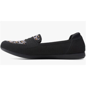 Clarks Women's Carly Charm Loafer, Black/Stone Interest Textile, 6 M