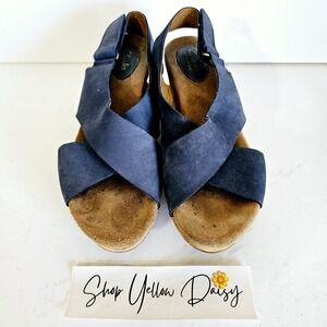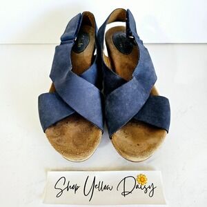 Clarks Womens Caslynn Blue Nubuck Leather Cork Wedge Sandals Sz 8 - Sh439.2