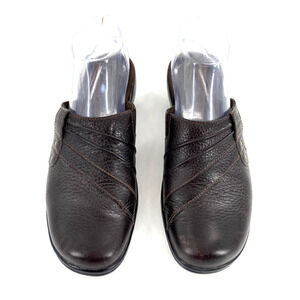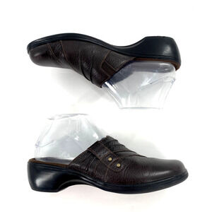 Clarks Womens Casual Mules Clogs Slip On Sz 8M Brown Leather Ruched Detail