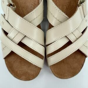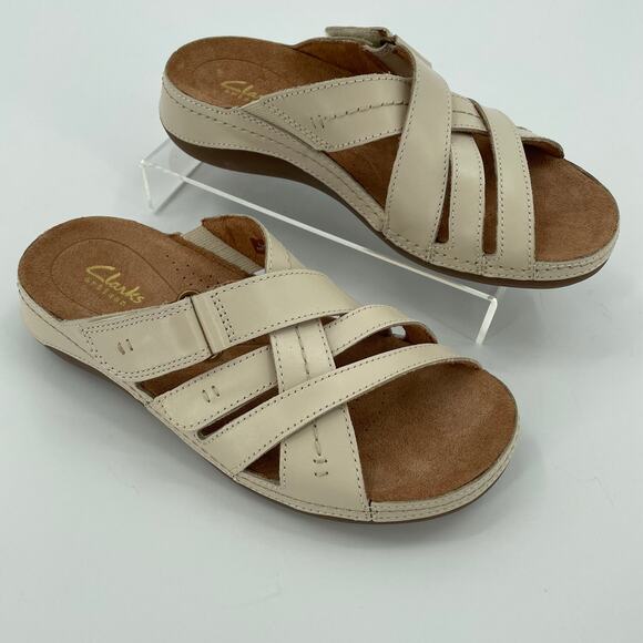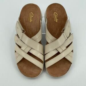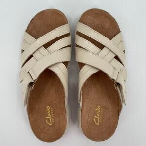 Clarks Women’s Cecily Slide Strappy Sandals Cream Leather, Sz. 6M Adjustable