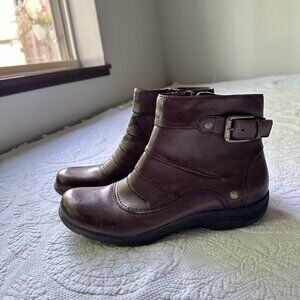 Clarks Women's Christine Club Boot Size 10 Whisky Brown Leather Bootie Comfy