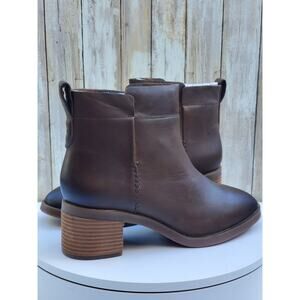 Clarks Women’s Lileigh Charm Leather Ankle Boots – Size 8.5 Wide – Comfort Stacked Heel Booties