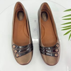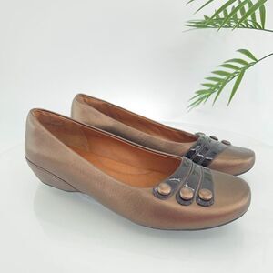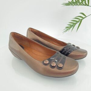 Clarks Womens Concert Drum Wedge Size 8 Bronze Leather Ballet Shoe Elegant Work