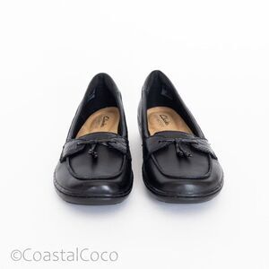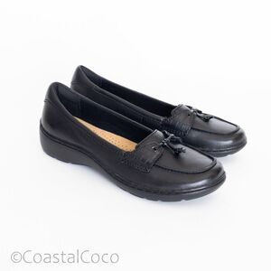 Clarks Women's Cora Haley Loafer Black Leather 7.5 Sleek Comfort Preppy Office