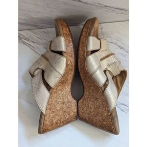 Clark's Women's Cream Slip On Open Toe Leather 3" Heel Sandal Size 7.5