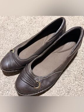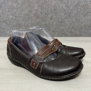 Clarks Womens Dark Brown Leather Loafers Sz 9W
