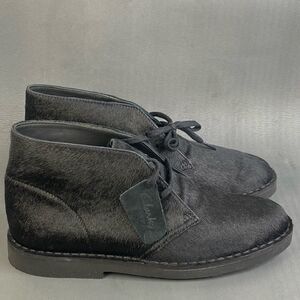 Clarks Womens Desert Genuine Calf Hair black Chukka boot shoes size 10