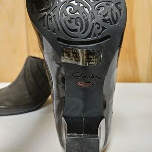Clarks Womens Diamond Chest Brown Suede Heeled Shooties Booties Comfort size 7.5