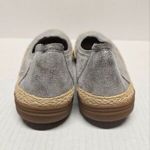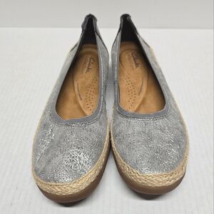 Clarks Women's Elaina Rae Textured Pewter Metallic Leather Jute-Trim Flats 8.5
