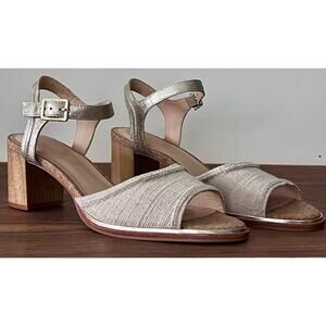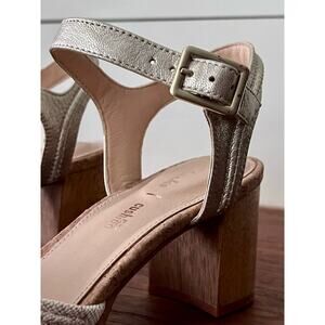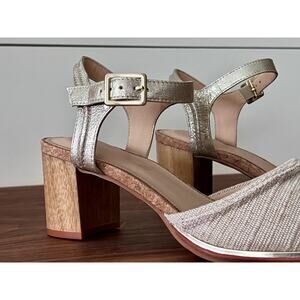 These are in excellent condition. They feature a block heel, adjustable ankle strap, metallic detail. Size 8