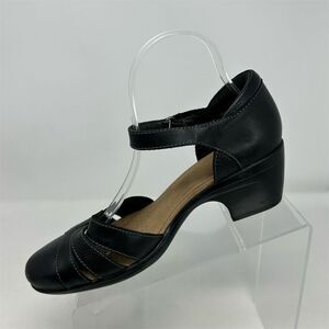 Clarks Women's Emily Daisy Black Leather Pumps Size 9 Formal Heels Dressy