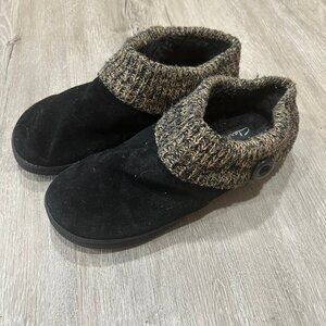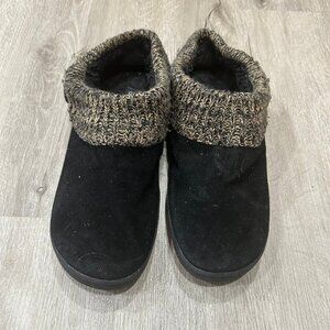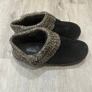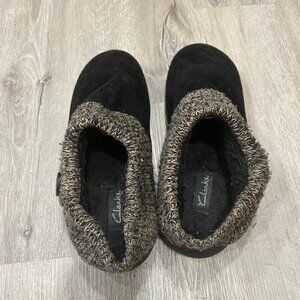 Clarks Women's Fairisle Scuff Leather Slipper Mules Sweater Cuff Black Clog 11