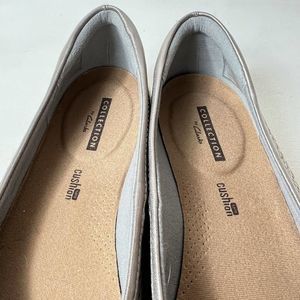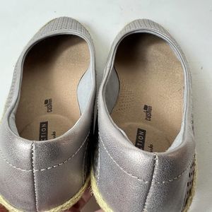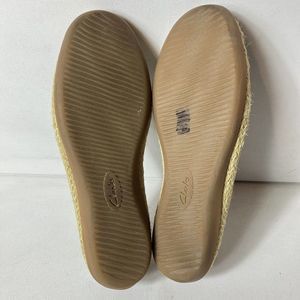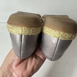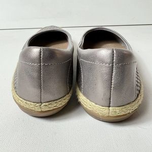 Clarks Womens Flats Pewter Leather Loafer Shoes Size 8W Perforated Espadrille