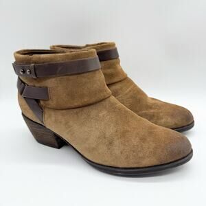 Clarks Women's Gelata Freeza Suede Ankle Wrap Heeled Booties Brown Size 7.5 Boho