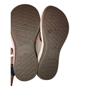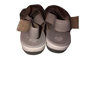 Embrace effortless style with these comfortable Clarks sandals! Their versatile gray hue and criss-cross strap design merge fashion and function. These sandals are designed with a focus on comfort, making them perfect for all-day wear. The minimalist silhouette offers both support and a chic, contemporary vibe. Step into these sandals for weekend getaways, casual outings, or simply adding a touch of relaxed elegance to your everyday ensemble.