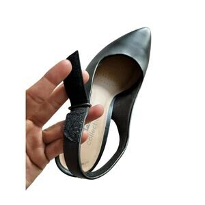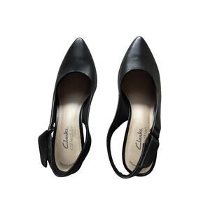Clarks Women's Ileana Poppy Pump Slingback Pointed-Toe Black Leather Heels Sz 7