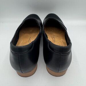 The Clarks Women's Juliet Palm Black Soft Leather Loafers in size 7 are a stylish and comfortable option for women. Made with high-quality leather, these slip-on loafers feature a solid black color and a rubber outsole for durability. With a focus on comfort and a preppy style, these loafers are versatile for all seasons and can be worn with a variety of outfits. Perfect for the modern woman looking for a classic and timeless shoe option.