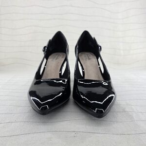 Clarks Womens Kataleyna Rae Black Pointed Toe Buckle Cut Out Patent Heels Size 7