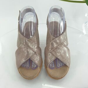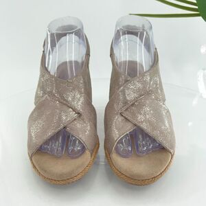 Clarks Women's Lafley Alaine Sandal Size 7 Wedge Slingback Tan Metallic Shoes