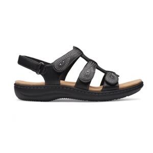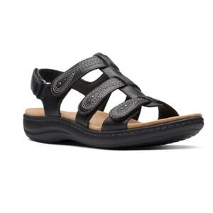 Clarks Women's Laurieann Vine Strappy Sport Sandals Black Leather Size 8.5W