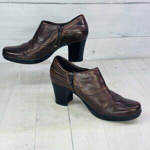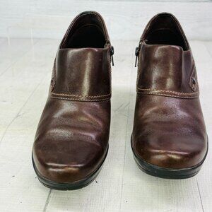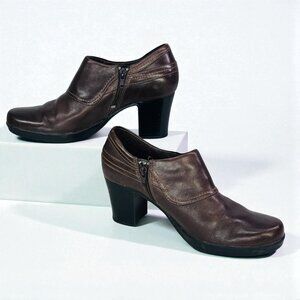 Clarks Womens Leather Ankle Boot Zip Block Heel Size Approx US 6M