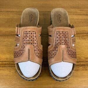 Clarks Womens Leather Slip-On Velcro Sandal Size 10