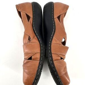 Clarks Women's Leather X Strap Slip-On Bendable Flat Shoe Brown Tan Size 9M