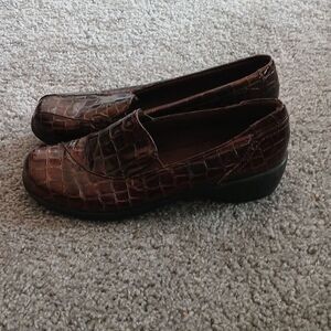 Clarks Women’s Loafer Bendables 64895 croco accent brown Sz 9 EUC