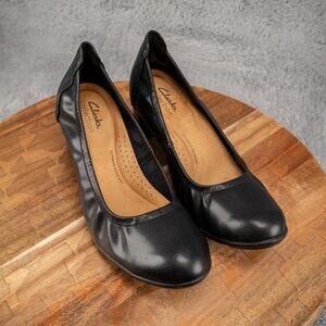 Clarks Women's Neiley Pearl Leather Slip On Pumps Black Size 8 M